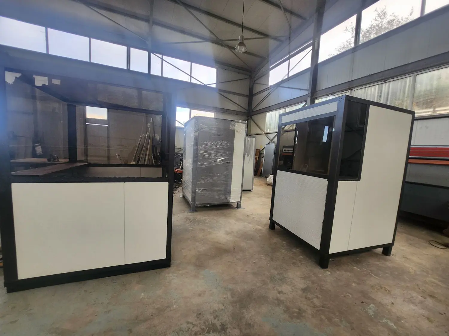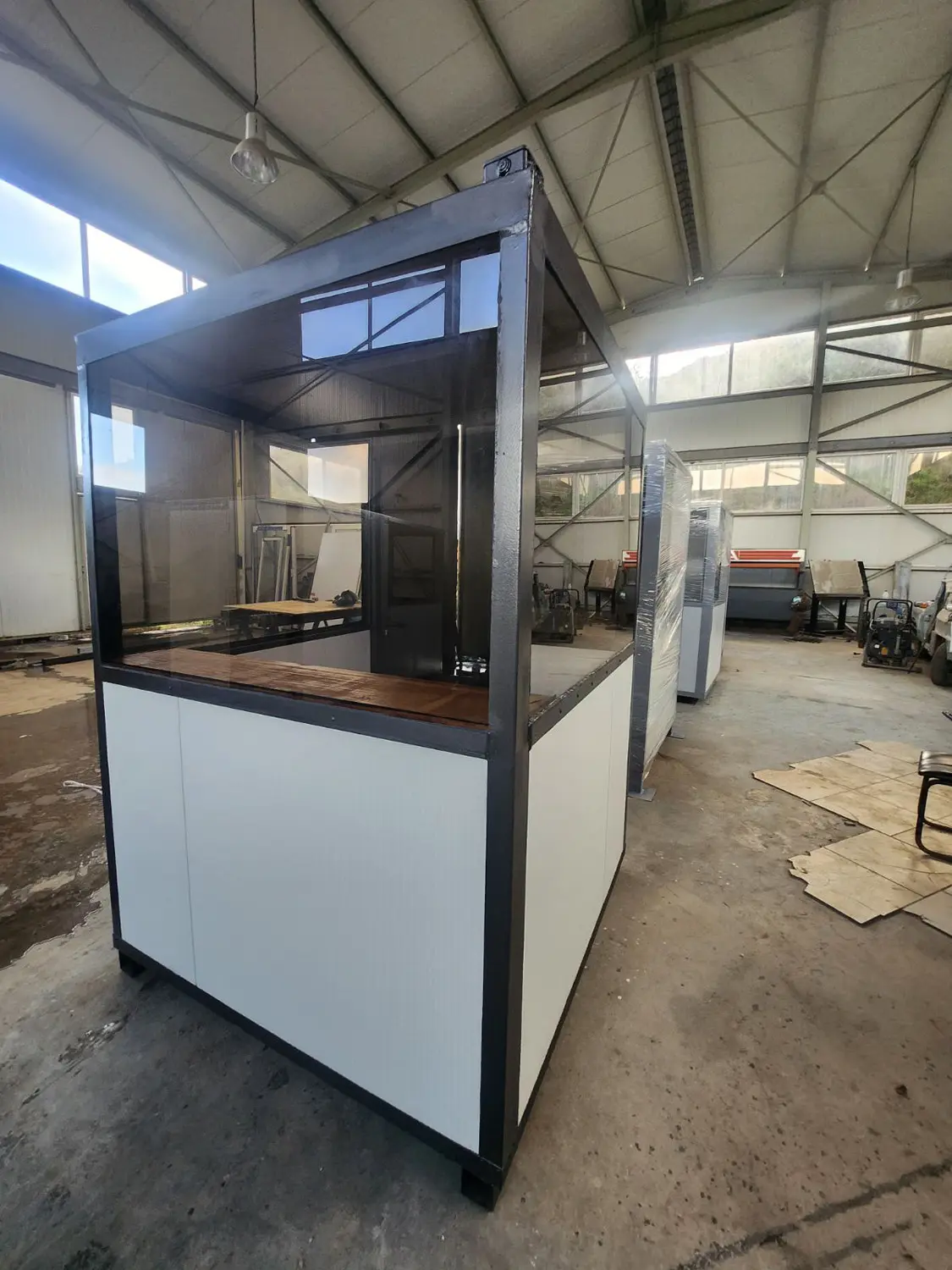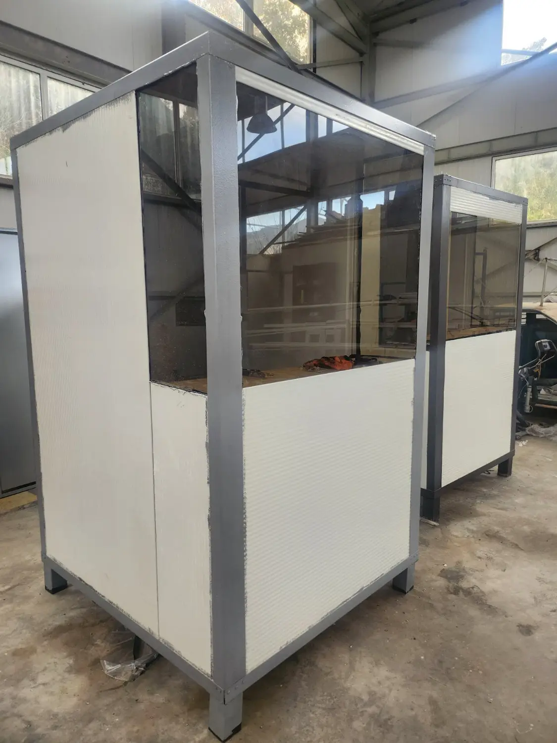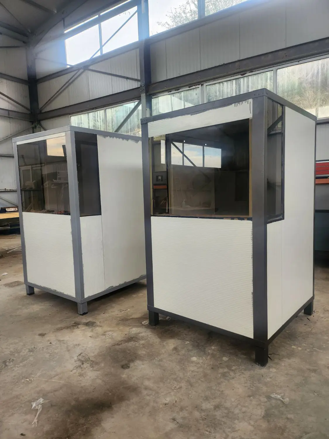 Τα προκατασκευασμένα φυλάκια με μεταλλικό σκελετό, επενδυμένα με πάνελ πολυουρεθάνης, μπορούν να παραχθούν σε προσαρμοσμένες διαστάσεις, ανάλογα με τις ανάγκες σας.